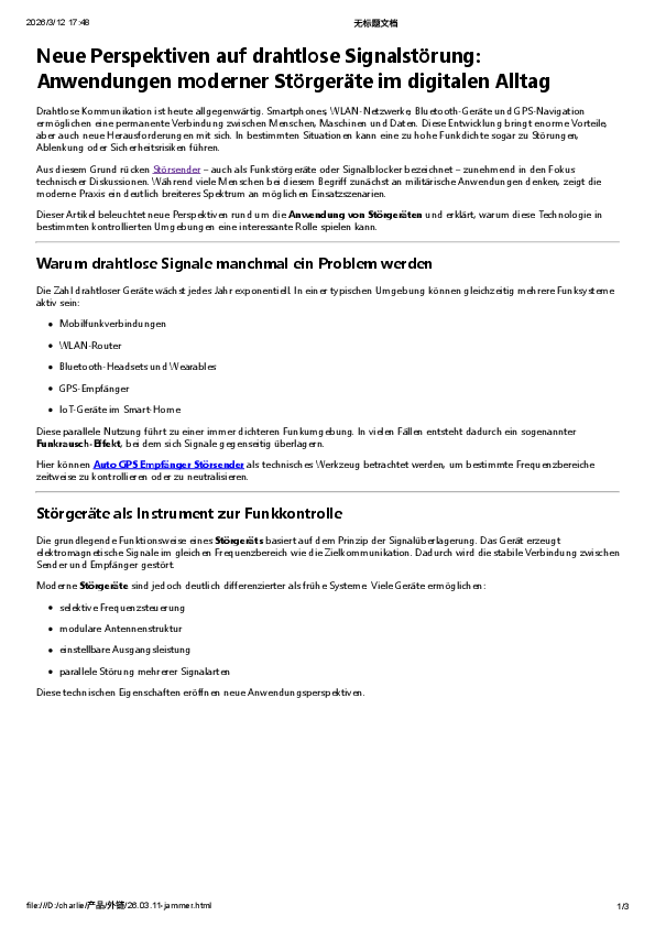 Aus diesem Grund rücken Störsender – auch als Funkstörgeräte oder Signalblocker bezeichnet – zunehmend in den Fokus technischer Diskussionen. https://www.jammer-store.de/blog.html
