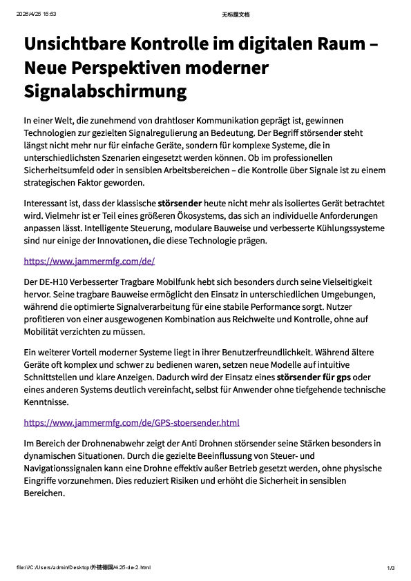 Jammermfg.com/de präsentiert innovative Technologien zur Verwaltung drahtloser Signale.